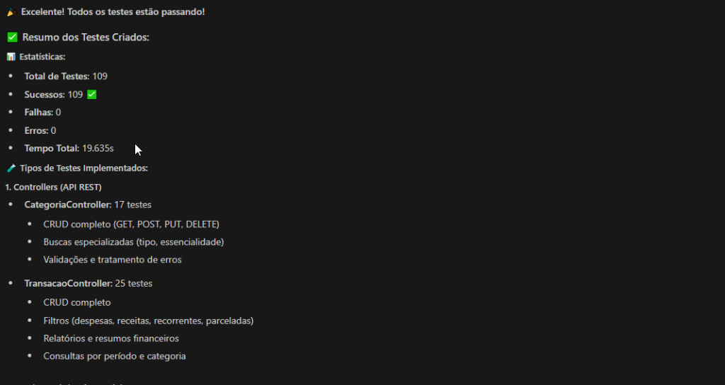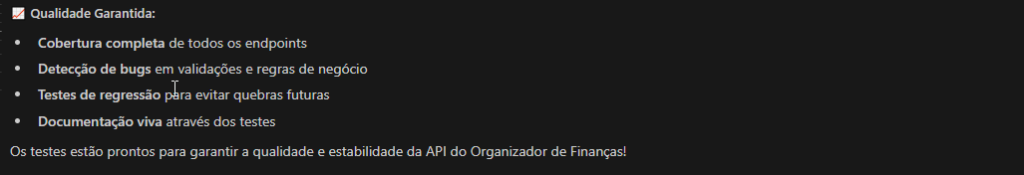 Para melhorar o nosso projeto, também solicitei que fossem criados testes unitários, para pegar quaisquer erros que pudessem ser gerados na criação das classes do nosso projeto, com isso reduzimos alguns erros que poderiam nos custar um bom tempo, segue o prompt: