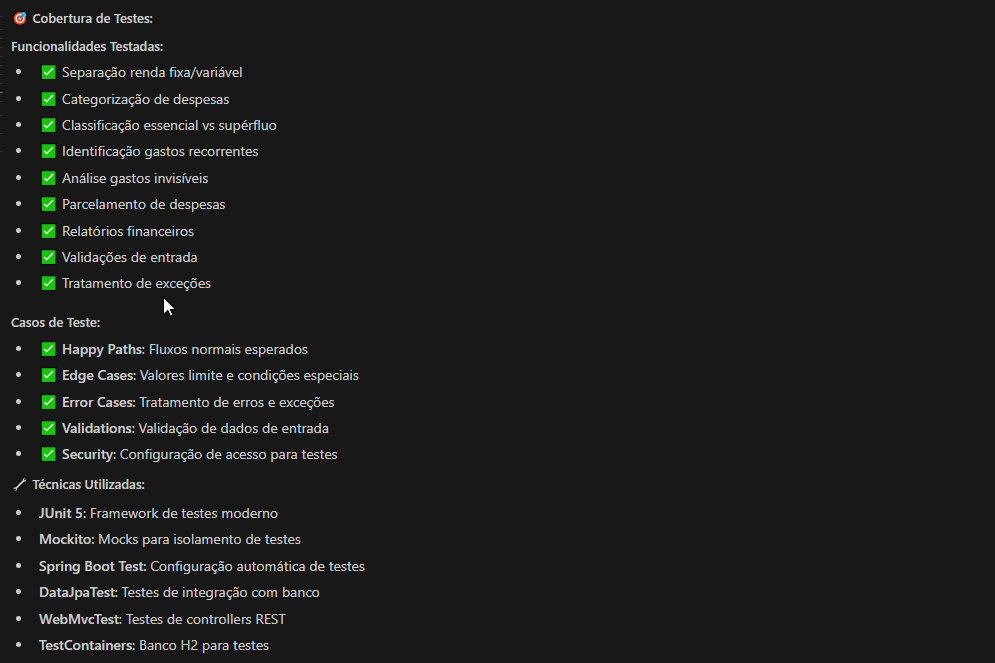 Vou criar um projeto Spring Boot para organizador de finanças com Java 17.Vamos trabalhar com alguns pontos, como é apenas um mvp utilizaremos o banco H2 embutido, será utilizada a arquitetura MVC. também teremos algumas regras que serão utilzadas para desenvolver nosso sistema essas regras podem ser colunas no banco de dados que são: Separe renda fixa e variável. Liste todas as despesas. Divida gastos por categorias. Separe essenciais de supérfluos. Identifique gastos recorrentes. Analise gastos invisíveis. Quebre despesas grandes em mensais. Visualize tudo em uma lista simples. Elimine o que não agrega valor.