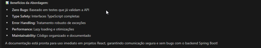 como nossa aplicação está ok, o próximo passo foi solicitar a documentação da API para que possamos utilizar no próximo projeto que será em REACTJS, segue o Prompt: